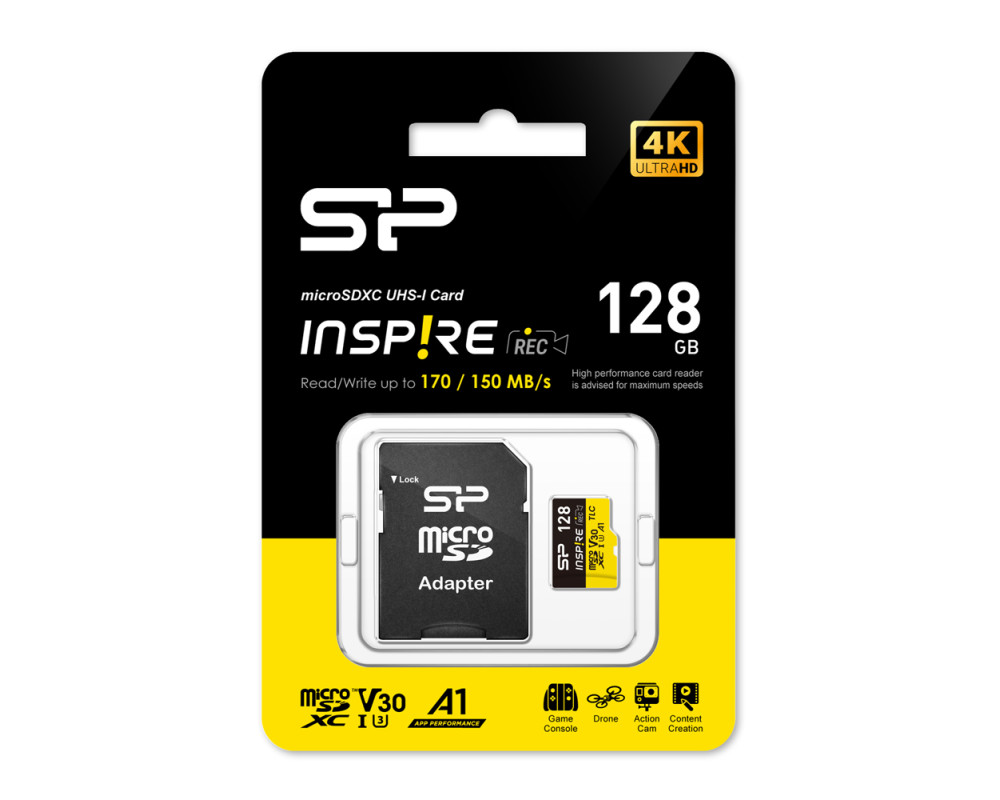 SILICON POWER κάρτα μνήμης microSDXC Inspire, 128GB, UHS-I U3 A1 V30