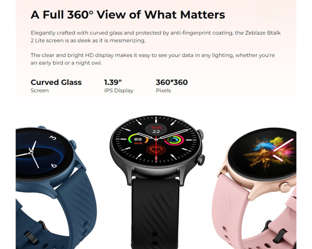 ZEBLAZE smartwatch Btalk 2 Lite, heart rate, 1.39" IPS, IP68, μπλε