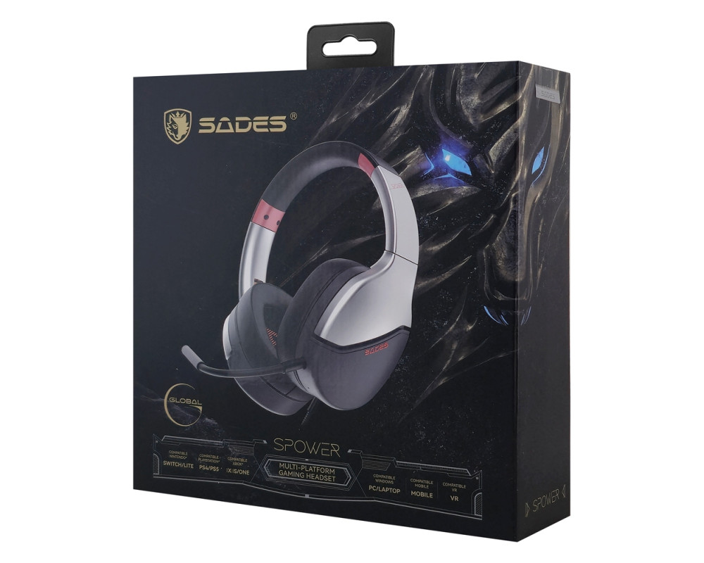 SADES gaming headset SPOWER, 3.5mm σύνδεση, 40mm, multi-platform, ασημί