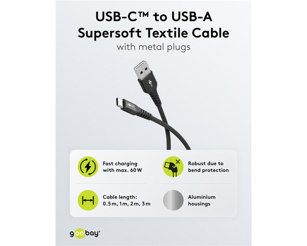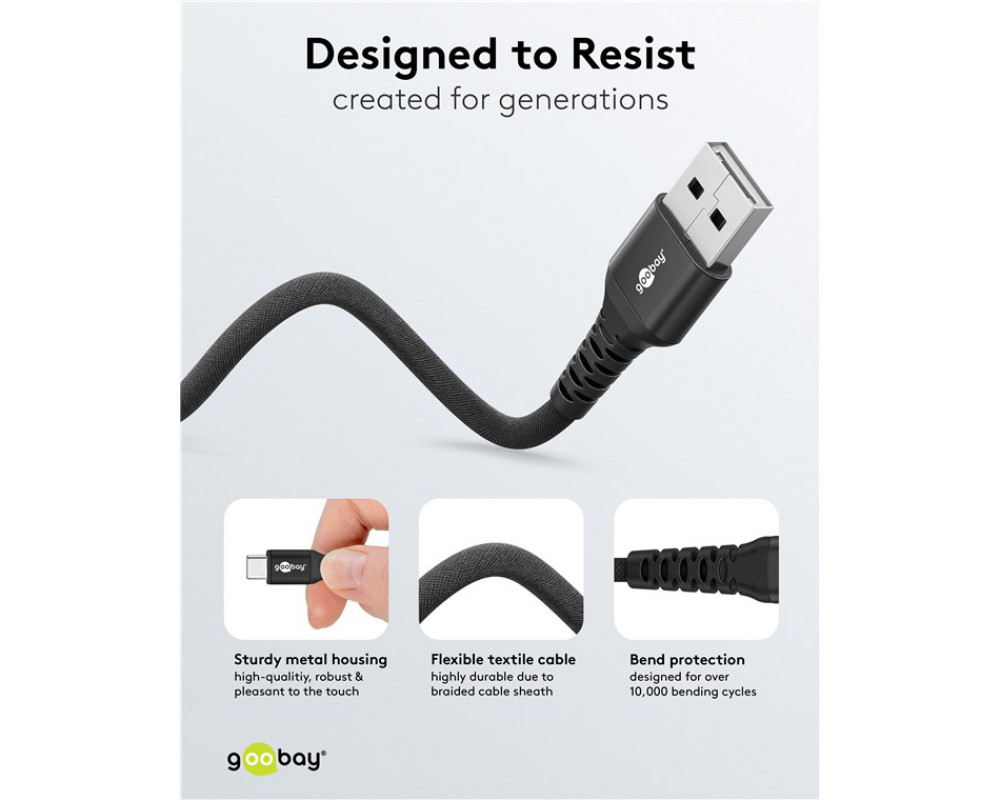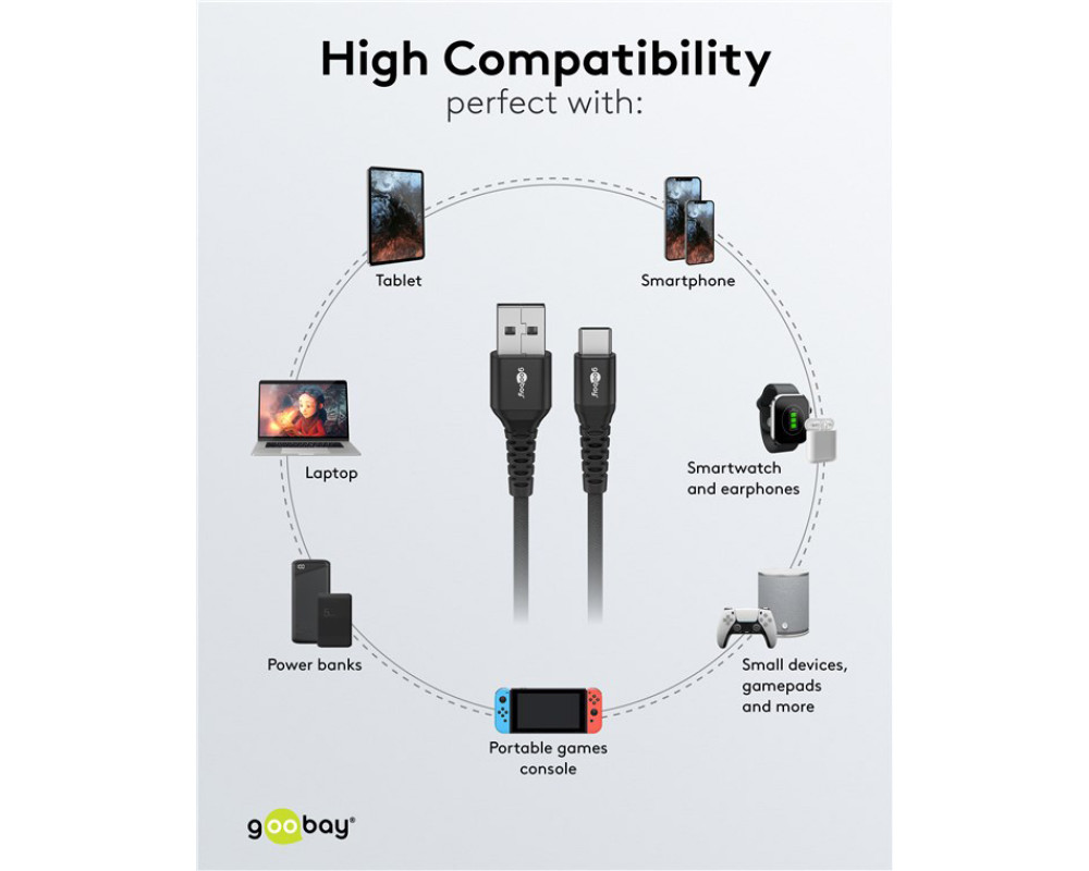 Καλώδιο φόρτισης και μεταφοράς δεδομένων USB-C σε USB της Goobay.