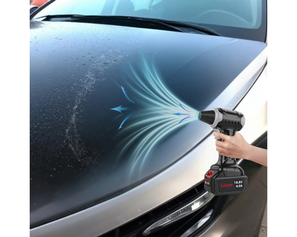 Ηλεκτρικό air duster με ισχυρό κινητήρα της Kinzir, κατάλληλο για απομάκρυνση φύλλων, νερού ή χιονιού από αυτοκίνητα αλλά και σκόνης από αξεσουάρ και οικιακά αντικείμενα όπως πληκτρολόγια, PC cases, κλιματιστικά, ηλεκτρονικές συσκευές κ.α.