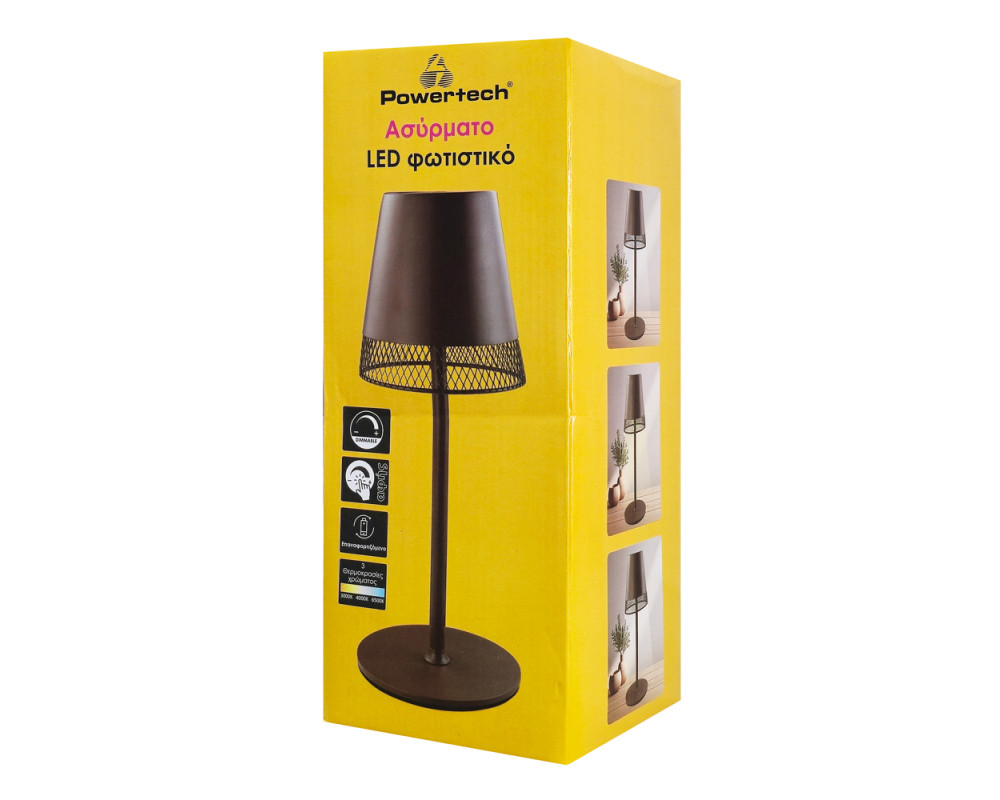POWERTECH LED επιτραπέζιο φωτιστικό HLL-0191, ρυθμιζόμενο, επαναφορτιζόμενο, καφέ