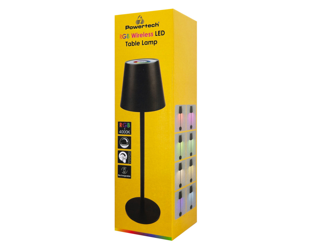 POWERTECH LED επιτραπέζιο φωτιστικό HLL-0195, RGB, ρυθμιζόμενο, επαναφορτιζόμενο, μαύρο