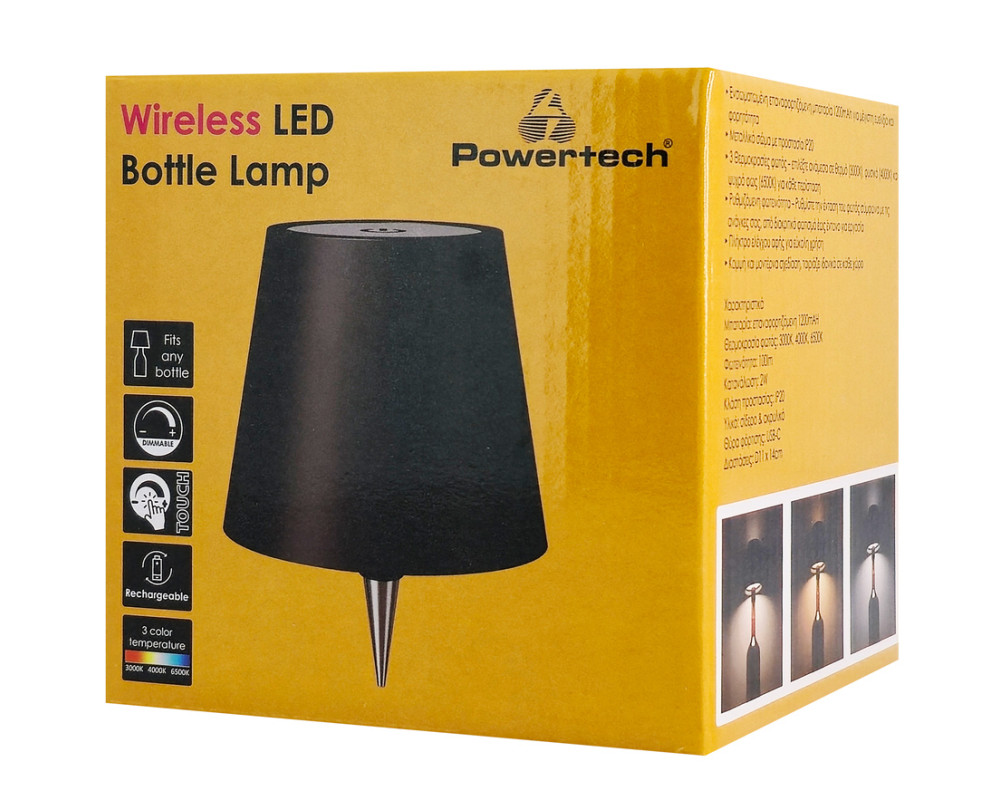 POWERTECH LED φωτιστικό για μπουκάλι HLL-0197, ρυθμιζόμενο, επαναφορτιζόμενο, μαύρο
