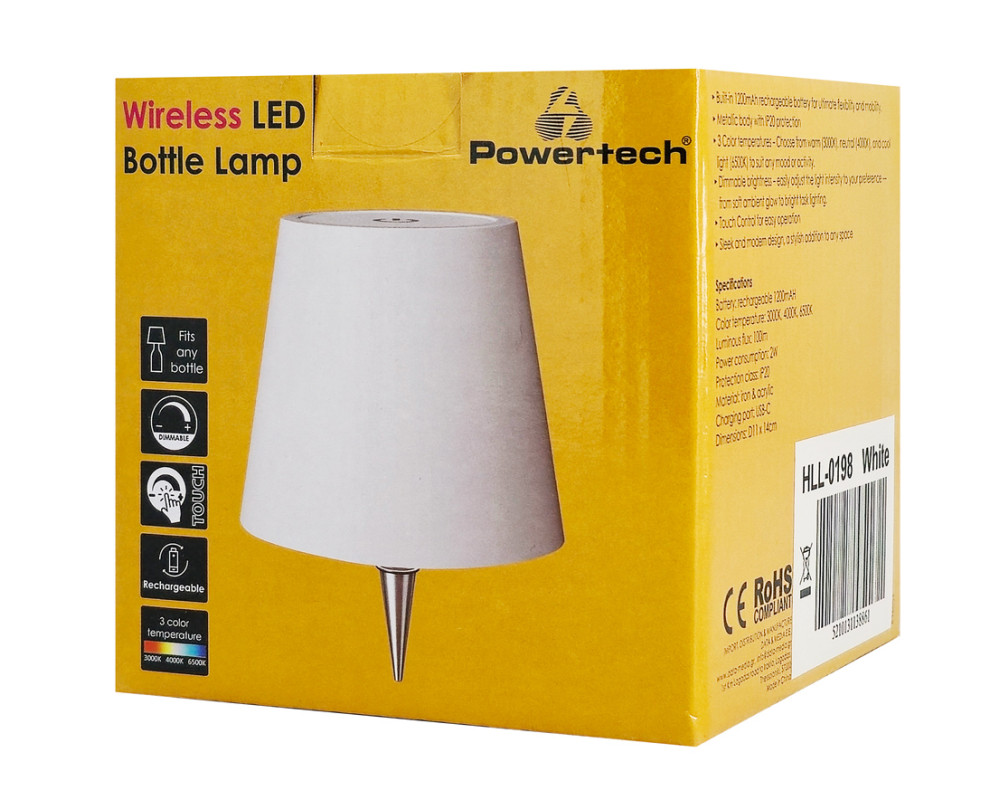 POWERTECH LED φωτιστικό για μπουκάλι HLL-0198, ρυθμιζόμενο, επαναφορτιζόμενο, λευκό