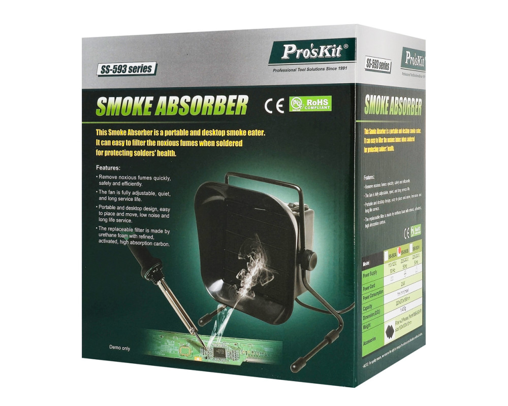 PROSKIT σταθμός απορρόφησης καπνού SS-593B με φίλτρο άνθρακα, 23W