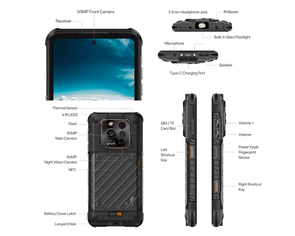 RUGONE smartphone Xever 7 Pro με θερμική εικόνα, 6.67", 12/512GB, 5G, 5550mAh, IP68/IP69K/MIL-STD-810H, μαύρο