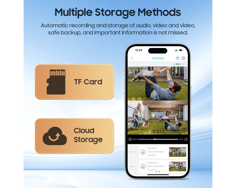 -Storage: Supports TF Card 4GB - 128GB or Cloud