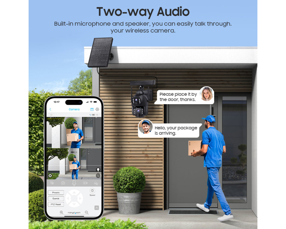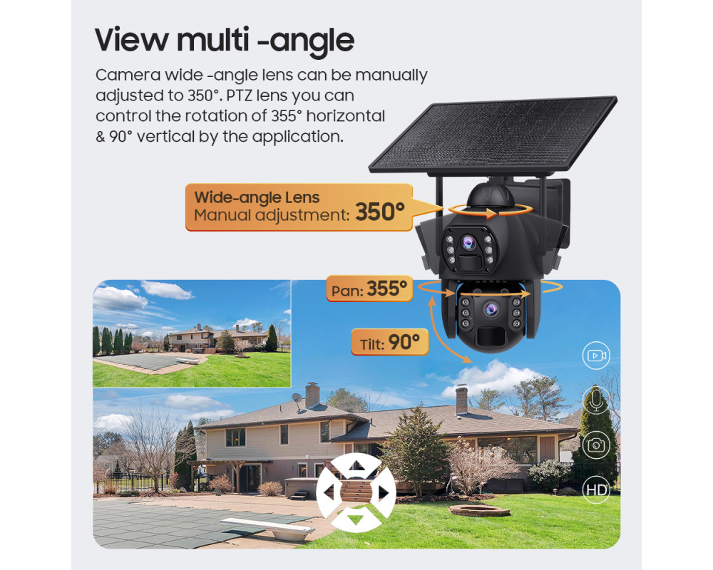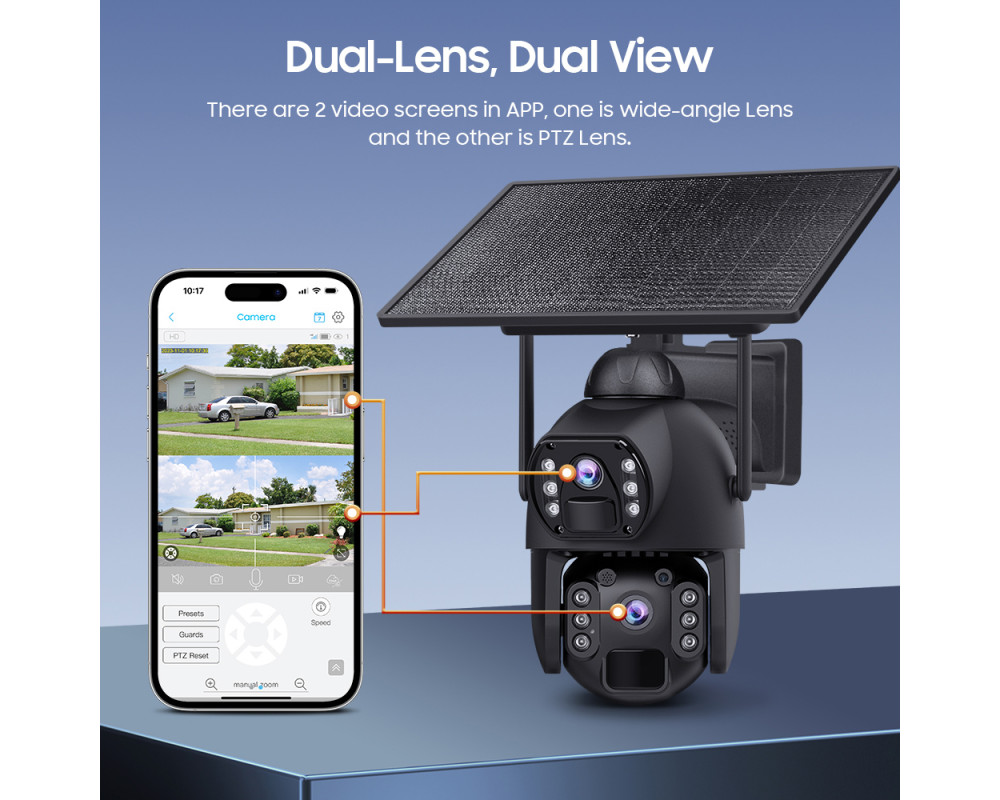 Ενσωματώνει 2 φακούς που επιτρέπουν μεγαλύτερη κάλυψη στον χώρο και υποστηρίζει PTZ λειτουργία που σας επιτρέπει την οριζόντια και κάθετη μετακίνηση της κάμερας μέσω της εφαρμογής.