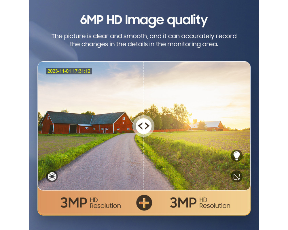 -Resolution: HD: 2304x1296/15fps, SD: 640x360/15fps, 3MP + 3MP