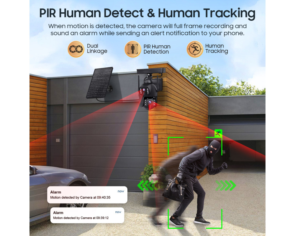 Μπορεί να ανιχνεύσει την ανθρώπινη σιλουέτα και κίνηση, στέλνοντας ειδοποιήσεις στο smartphone σας κάθε φορά που ανιχνεύεται κίνηση αλλά και να ενεργοποιήσει ηχητικό συναγερμό.