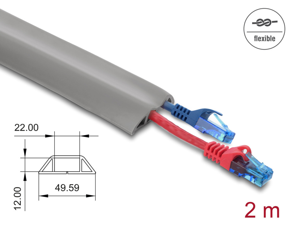 DELOCK κανάλι καλωδίων 20767 με αυτοκόλλητο, εύκαμπτο PVC, 50x14mm, 2m, γκρι