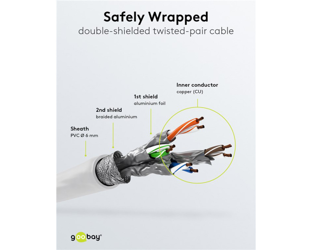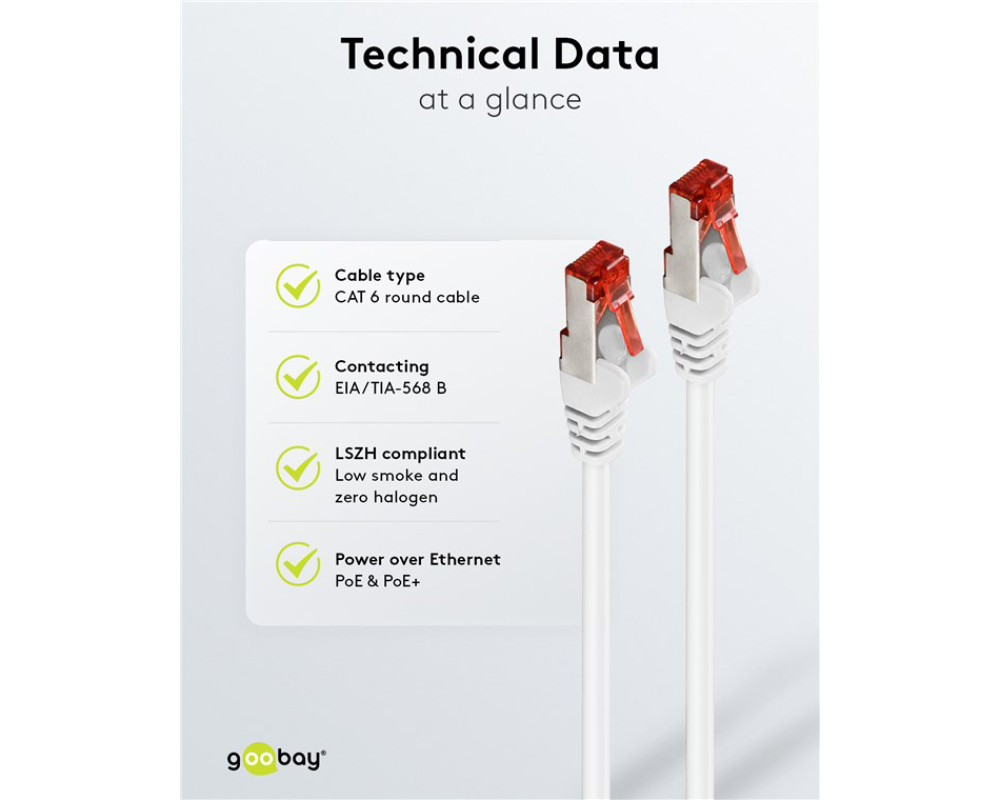 Τα καλώδια δικτύου της Goobay κατασκευάζονται από ποιοτικά υλικά, με τις υψηλότερες τεχνικές προδιαγραφές, προσφέροντας αξιόπιστη λειτουργία υψηλής απόδοσης, με αντοχή στον χρόνο.