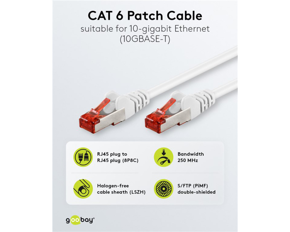 GOOBAY καλώδιο δικτύου 95587, CAT 6 S/FTP, copper, 250MHz, 1.5m, λευκό