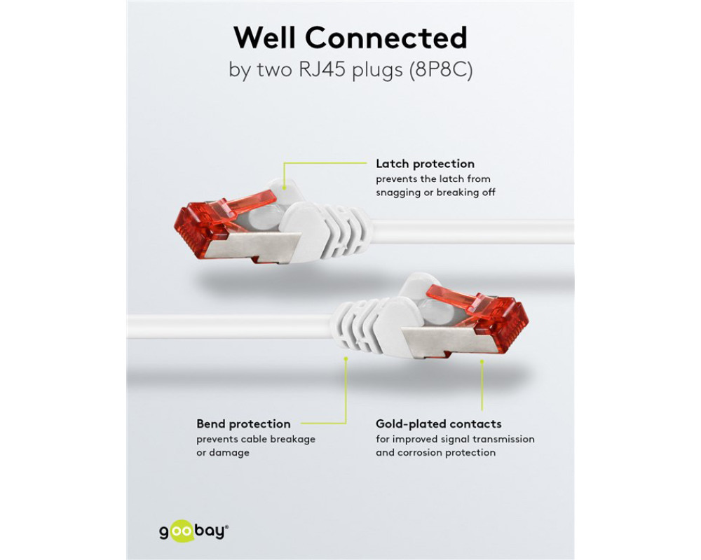 Τα καλώδια δικτύου της Goobay κατασκευάζονται από ποιοτικά υλικά, με τις υψηλότερες τεχνικές προδιαγραφές, προσφέροντας αξιόπιστη λειτουργία υψηλής απόδοσης, με αντοχή στον χρόνο.