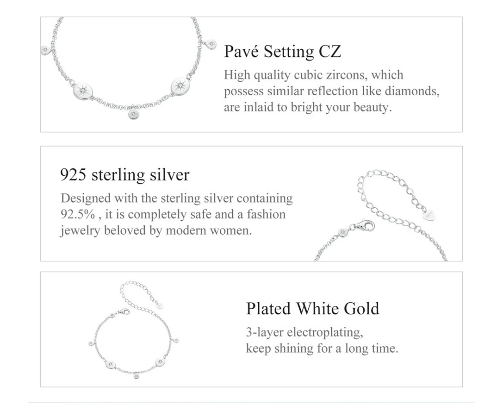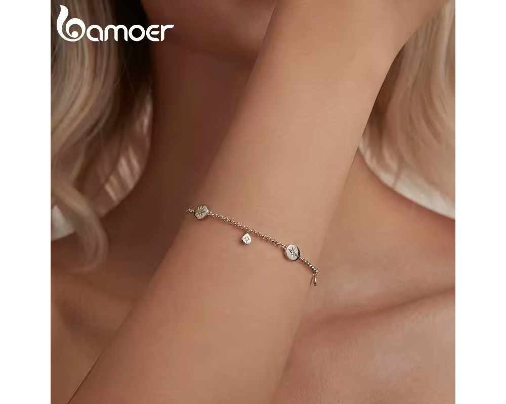 Κομψό βραχιόλι Bamoer, διακοσμημένο με κυβική ζιρκόνια, λευκού χρώματος.