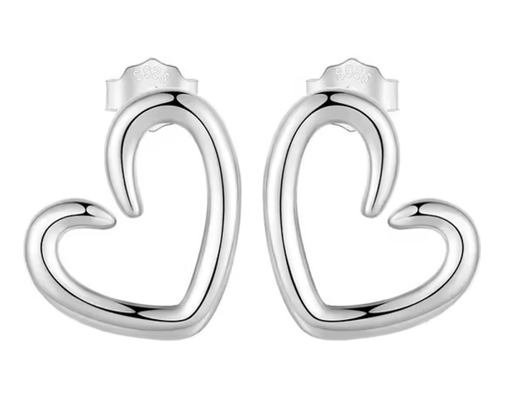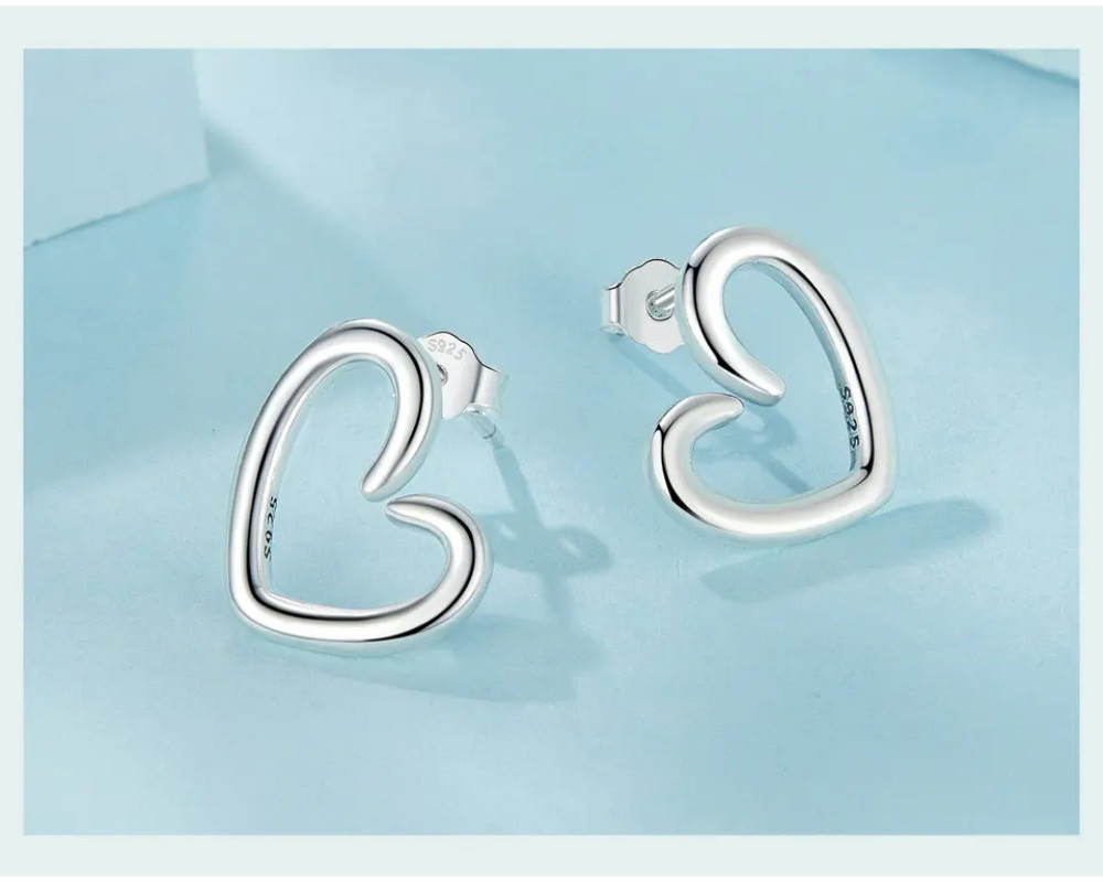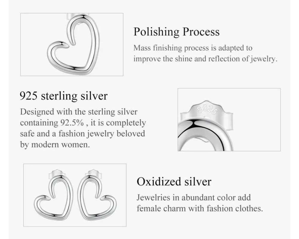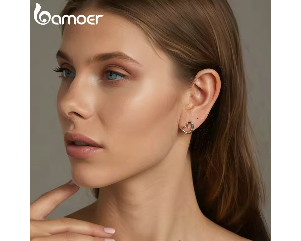 Μοντέρνα σκουλαρίκια καρφωτά Bamoer με σχήμα καρδιάς, κατασκευασμένα από οξειδωμένο ασήμι 925.