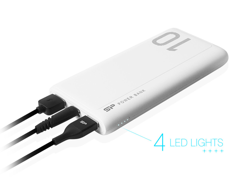 Με το power bank GP15 της Silicon Power το άγχος της εξαντλημένης μπαταρίας θα είναι παρελθόν. Η μπαταρία μεγάλης χωρητικότητας 10.000mAh, είναι σε θέση να φορτίσει το smartphone σας ή όποια άλλη συμβατή συσκευή, 2-4 φορές με μια μόνο φόρτιση. Διαθέτει 2 θύρες εξόδου USB απόδοσης έως 2.1A και 4 LEDS indicators για την ένδειξη της μπαταρίας. Φορτίζει μέσω θύρας USB Type-C ή Micro USB.