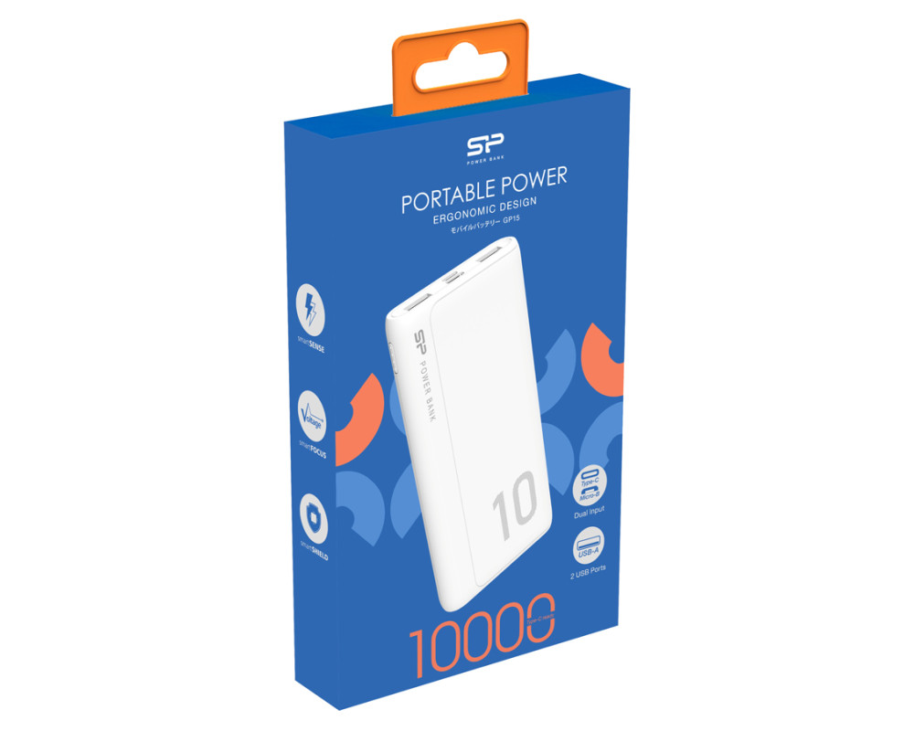 SILICON POWER power bank GP15, 10000mAh, 2x USB output, 2.1A, λευκό