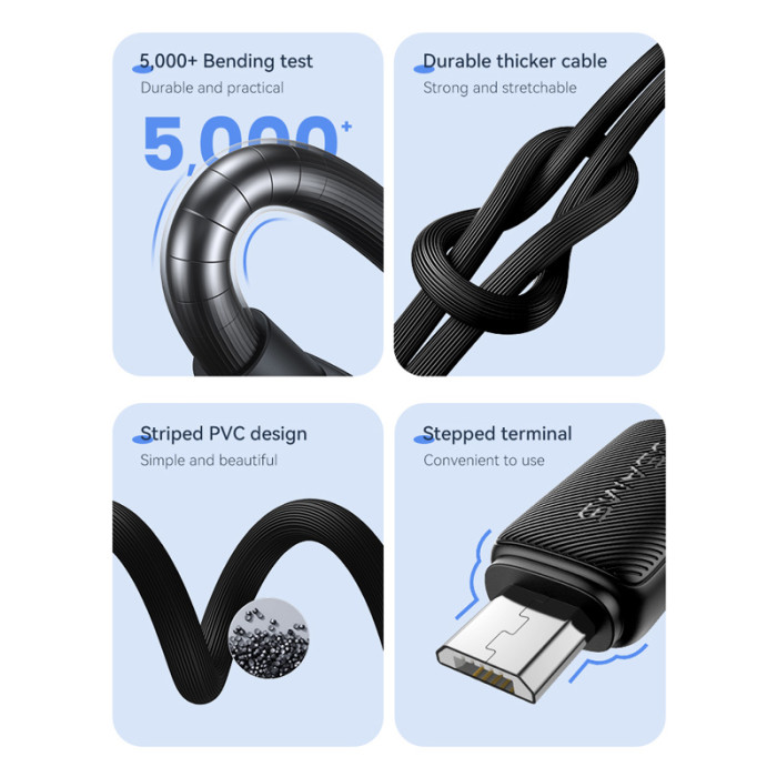 Καλώδιο φόρτισης και μεταφοράς δεδομένων micro USB σε USB της Usams. Υποστηρίζει φόρτιση με απόδοση έως 2A και μεταφορά δεδομένων με ταχύτητα έως 480Mbps.