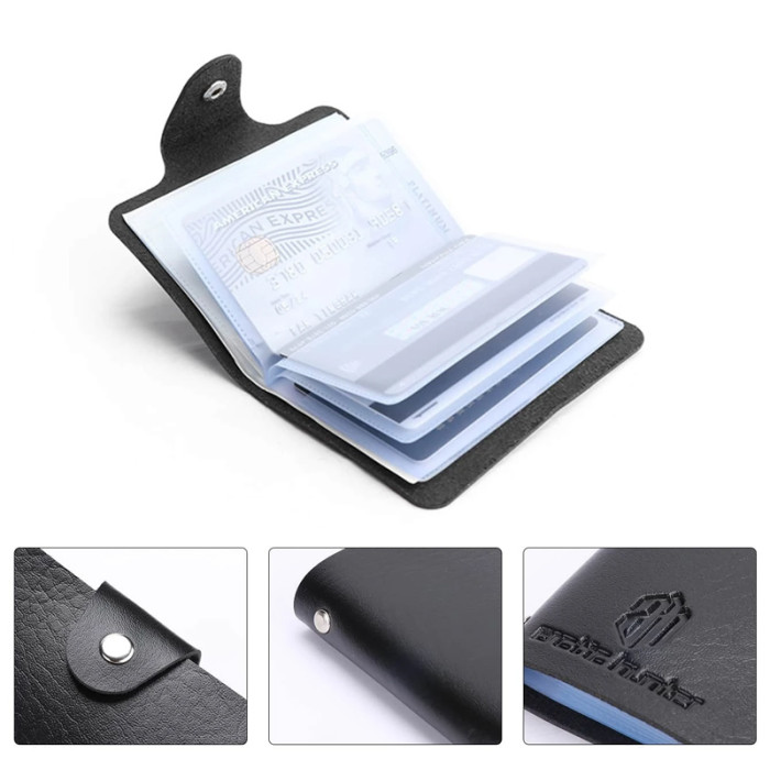 Θήκη καρτών, κατασκευασμένη από συνθετικό δέρμα. Διαθέτει 10 διάφανες θέσεις για την αποθήκευση των καρτών σας.