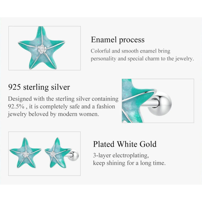 BAMOER σκουλαρίκια καρφωτά SCE1747 σε σχήμα κοχύλι, ασήμι 925, βεραμάν