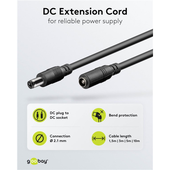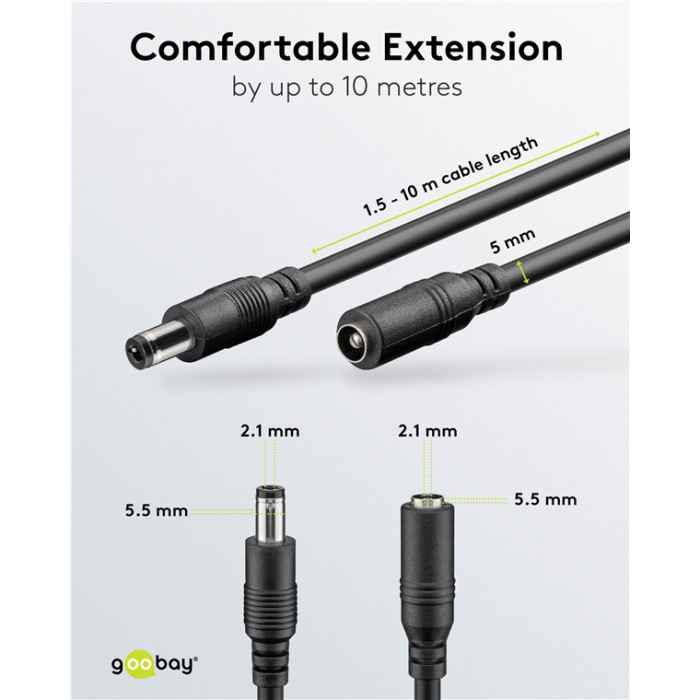 GOOBAY καλώδιο προέκτασης τροφοδοσίας 76671, 5.5x2.1mm, 5m, μαύρο