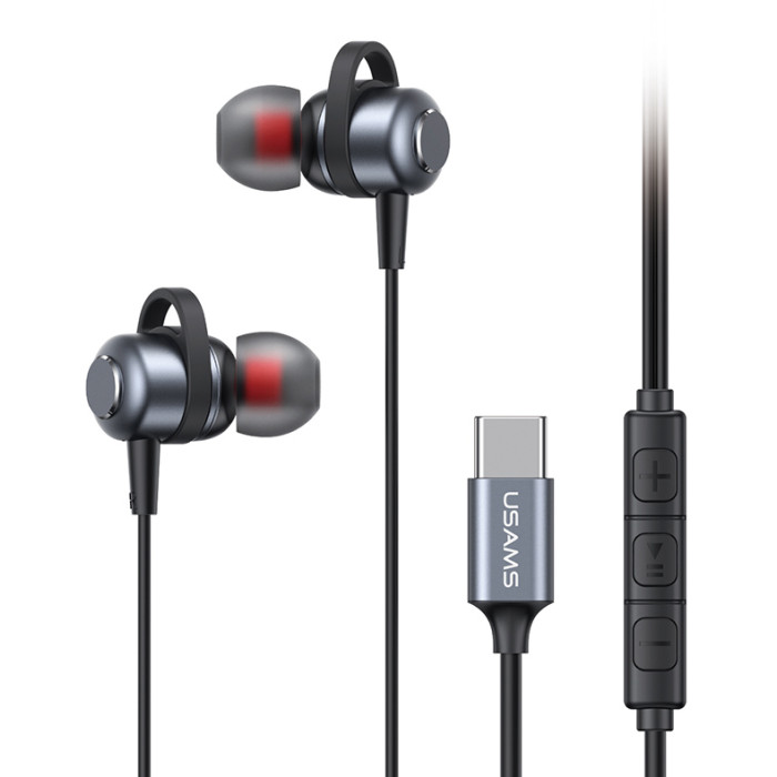 USAMS earphones με μικρόφωνο US-SJ758, USB-C σύνδεση, μεταλλικά, 1.2m, γκρι