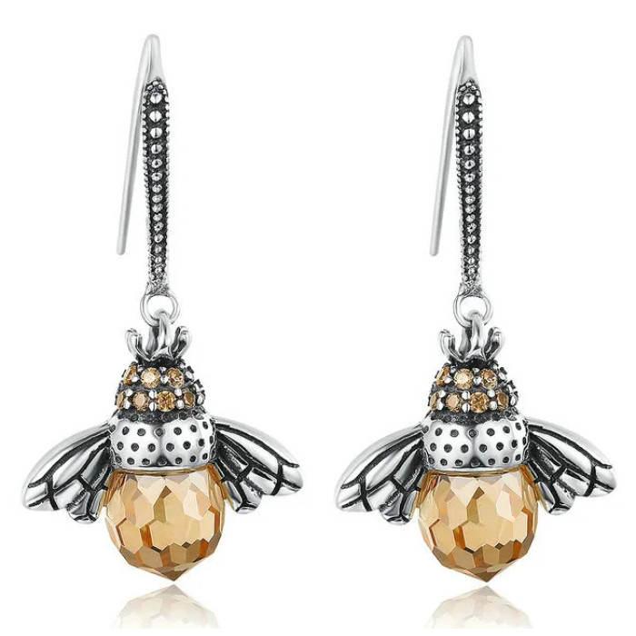 Κομψά, κρεμαστά σκουλαρίκια Bamoer κατασκευασμένα από ασήμι 925, επιπλατινωμένα, σε εντυπωσιακό σχέδιο μέλισσας, διακοσμημένα με κυβική ζιρκόνια.