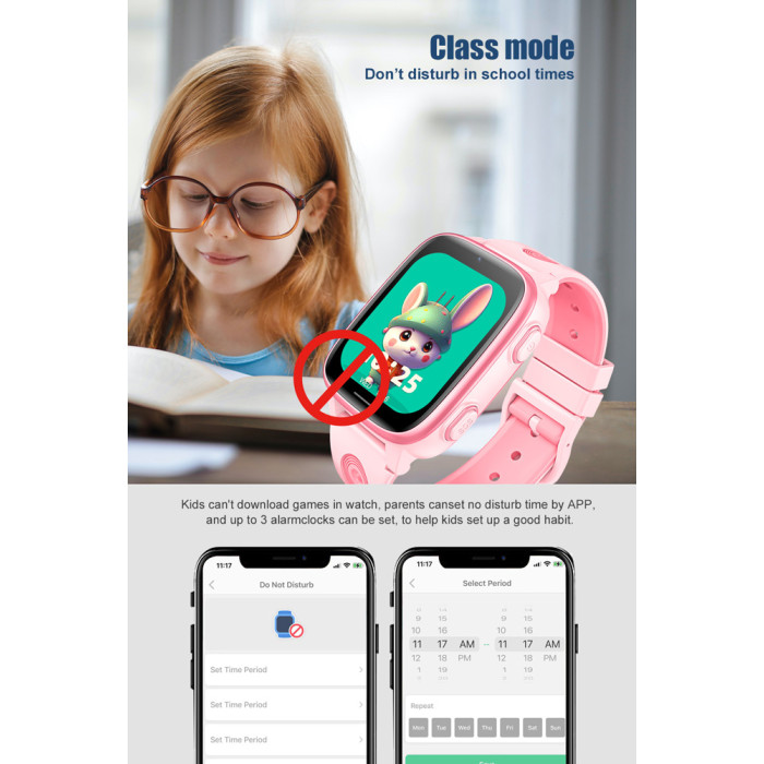 Εξοπλίζεται με έγχρωμη οθόνη αφής 1.83" και κάμερα. Μέσω δίκτυο 4G (με τη χρήση Nano SIM κάρτας) επιτρέπει την πραγματοποίηση τηλεφωνικών κλήσεων και βιντεοκλήσεων ενώ διαθέτει και πλήκτρο για κλήσεις SOS σε περιπτώσεις έκτακτης ανάγκης.