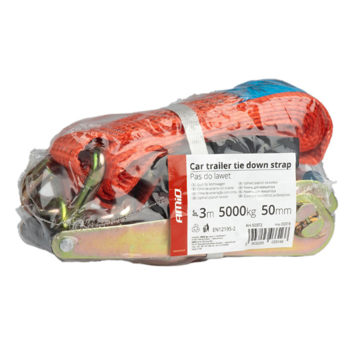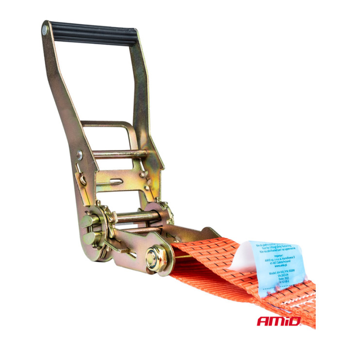 Ιμάντας της Amio με δυνατότητα συγκράτησης 5000kg, μήκους 3m. Εξαιρετικά ανθεκτικός με ανοξείδωτη καστάνια και γάντζο.