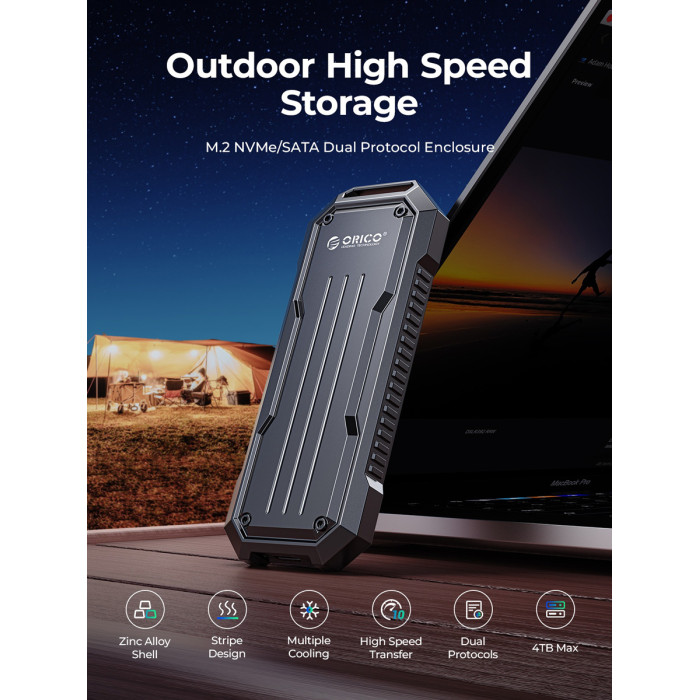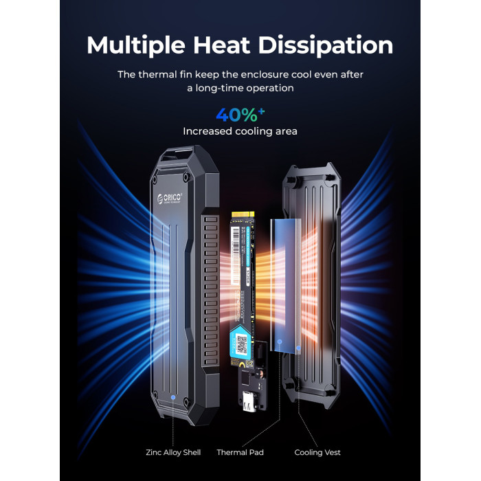 Η θήκη της ORICO επιτρέπει την σύνδεση M.2 NVME ή NGFF SSD με έναν επιτραπέζιο ή φορητό υπολογιστή μέσω θύρας USB-C ή USB.