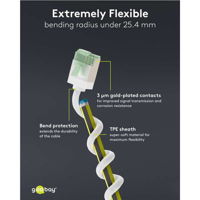 GOOBAY καλώδιο δικτύου 74361, CAT 8.1 U/FTP, ultra slim, copper, 40Gbps, 2m, λευκό