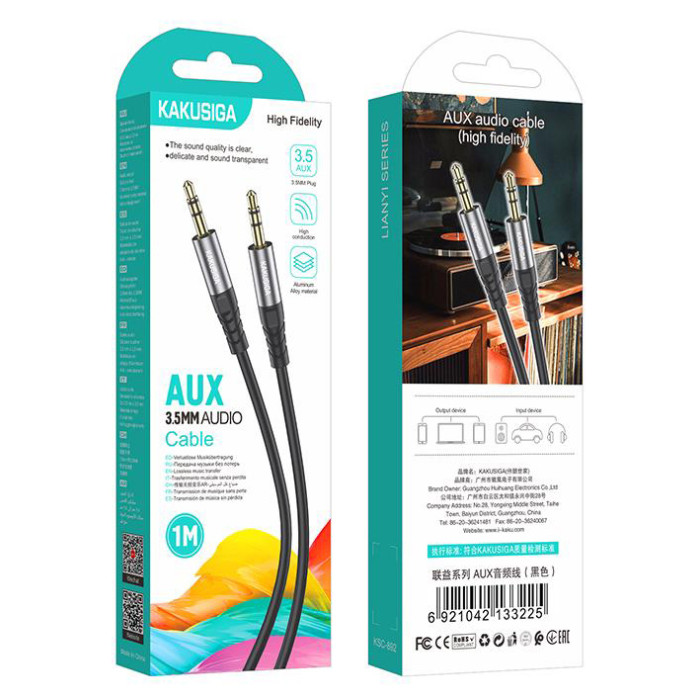 KAKUSIGA καλώδιο ήχου 3.5mm KSC-892, AUX, 1m, μαύρο