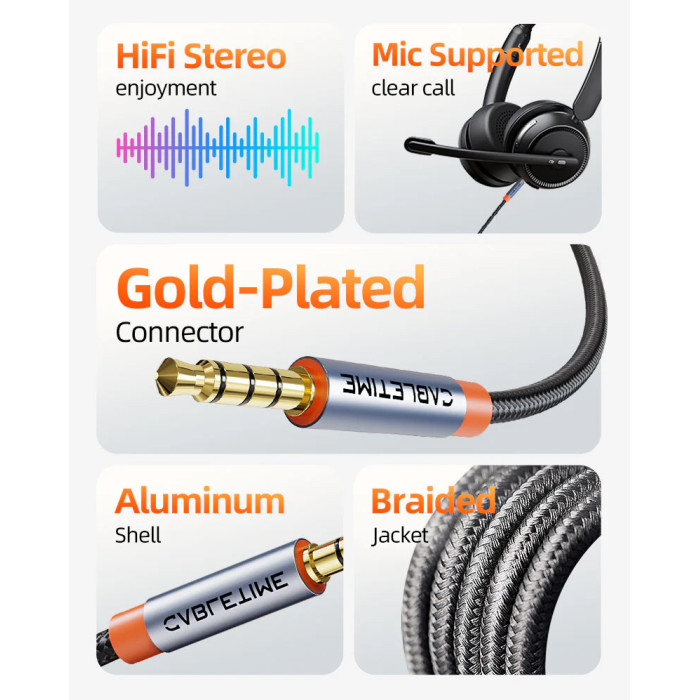 Καλώδιο ήχου της Cabletime ιδανικό για την σύνδεση συσκευών με θύρα 3.5mm όπως smartphones, desktops και laptops με συσκευές ήχου με θύρα 3.5mm όπως ηχεία, ακουστικά κ.α.