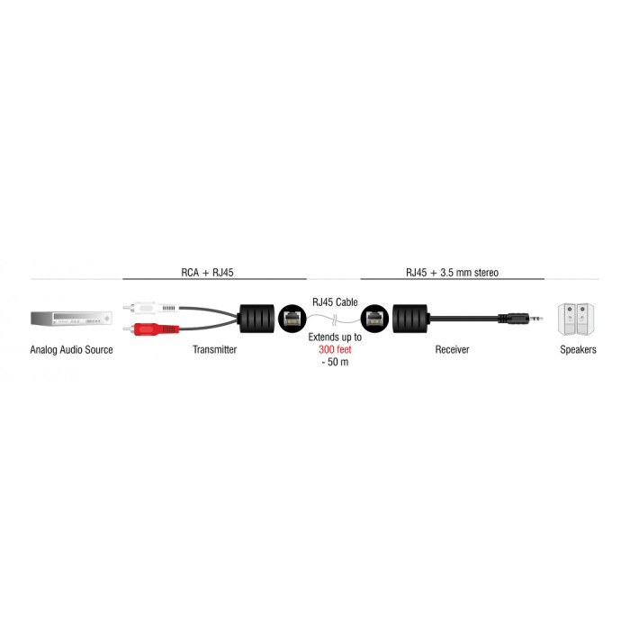 DELOCK audio extender 87859 3.5mm σε RCA, μέσω καλωδίου RJ45, έως 50m