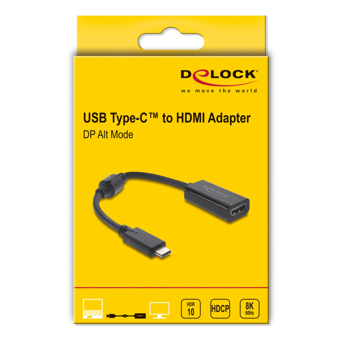 Αυτός ο αντάπτορας της Delock επιτρέπει τη σύνδεση μιας οθόνης με HDMI διεπαφή, με μια συσκευή με USB-C διεπαφή.