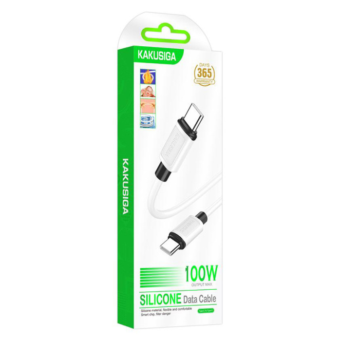 KAKUSIGA καλώδιο USB-C σε USB-C KSC-998, σιλικόνης, 100W, 480Mbps, 1m, λευκό