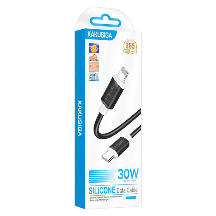 KAKUSIGA καλώδιο Lightning σε USB-C KSC-998, σιλικόνης, 30W, 480Mbps, 1m, μαύρο