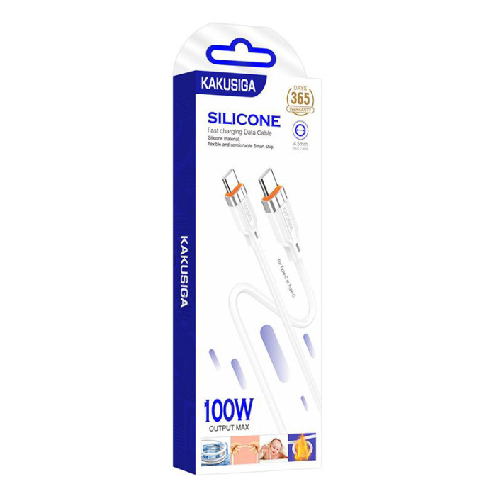 KAKUSIGA καλώδιο USB-C σε USB-C KSC-995, σιλικόνης, 100W, 480Mbps, 1m, λευκό