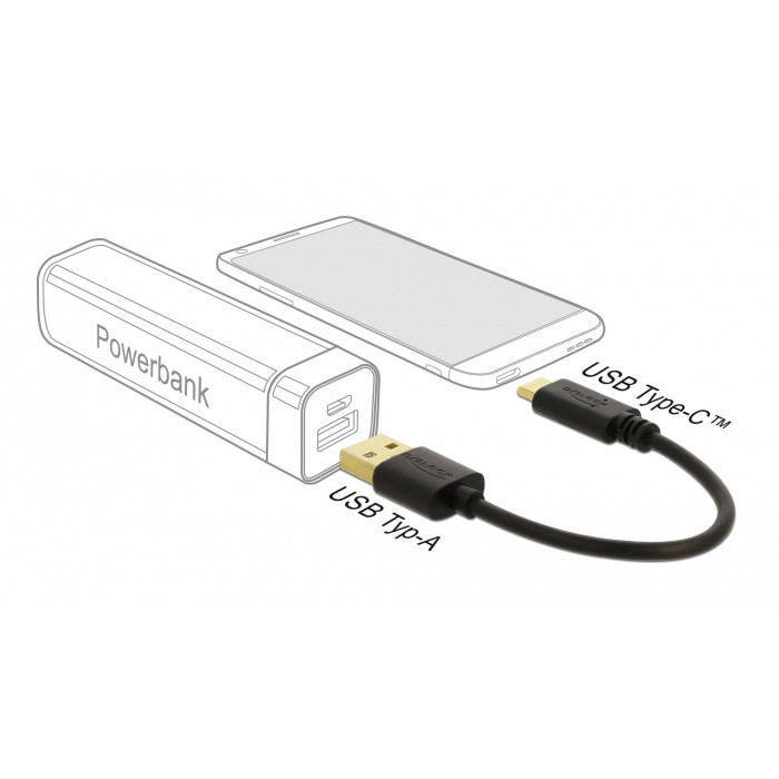 DELOCK καλώδιο USB σε USB-C 85354, 3A, 22AWG, 0.15m, μαύρο