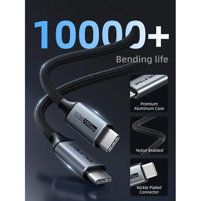 CABLETIME καλώδιο USB-C CT-CMCM2, USB 3.1, 100W, 20Gbps, 4K, 1.5m, μαύρο