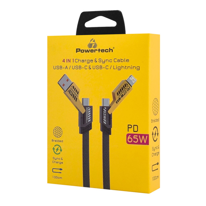 POWERTECH καλώδιο USB-C/USB σε USB-C/Lightning PTR-0164, 65W, 480Mbps, 1m, μαύρο