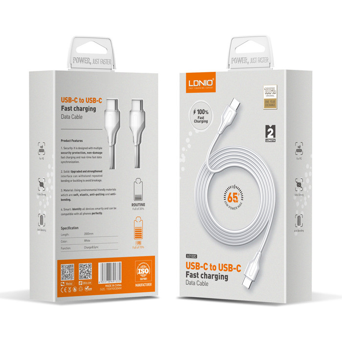 LDNIO καλώδιο USB-C σε USB-C LC122C, 65W PD, 2m, λευκό