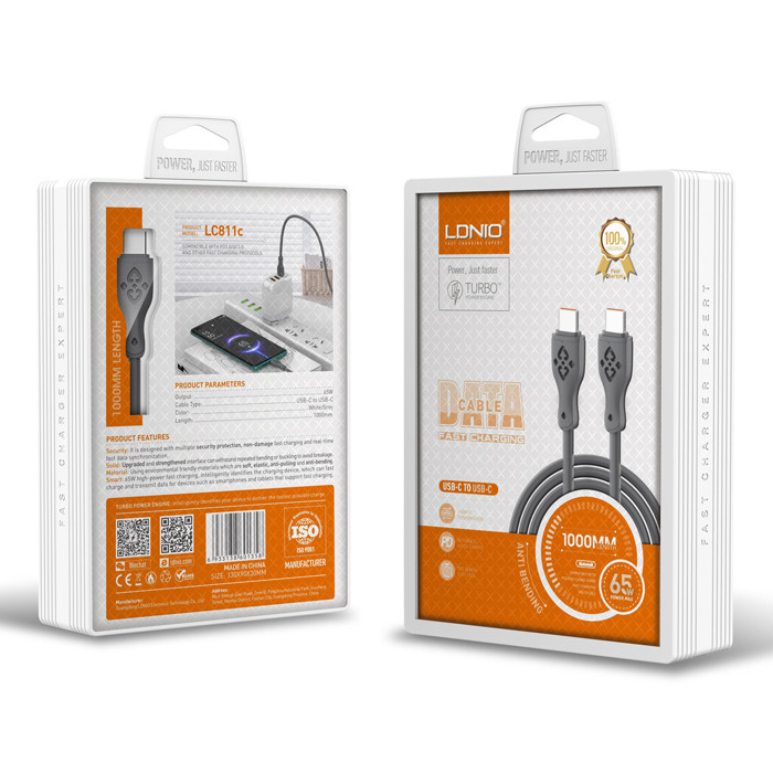 LDNIO καλώδιο USB-C σε USB-C LC811C, 65W PD, 1m, γκρι