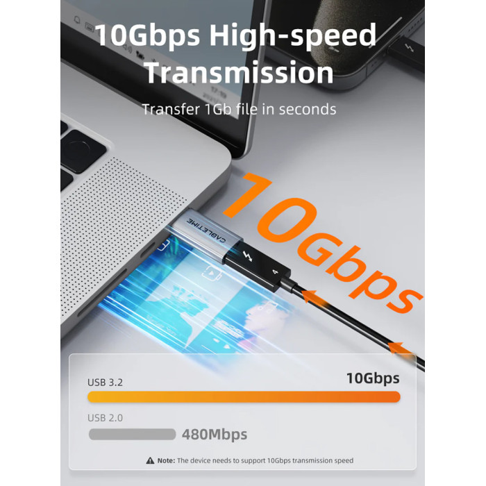 Αυτός ο αντάπτορας της Cabletime μπορεί να χρησιμοποιηθεί για την μετατροπή μιας θύρας USB σε USB-C, σε ένα laptop ή desktop.