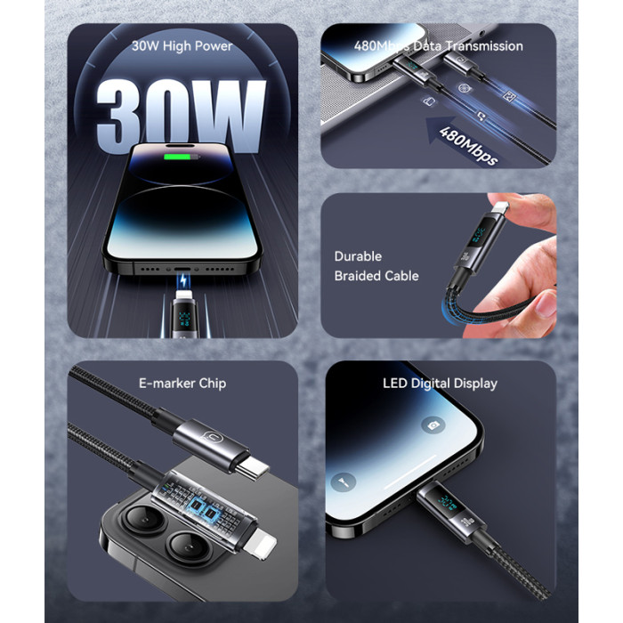 Καλώδιο φόρτισης και μεταφοράς δεδομένων Lightning σε USB-C της Usams. Υποστηρίζει φόρτιση με απόδοση έως 30W και μεταφορά δεδομένων με ταχύτητα έως 480Mbps.