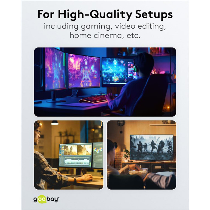 Τα καλώδια της Goobay κατασκευάζονται από ποιοτικά υλικά, με τις υψηλότερες τεχνικές προδιαγραφές, προσφέροντας αξιόπιστη λειτουργία υψηλής απόδοσης, με αντοχή στον χρόνο.