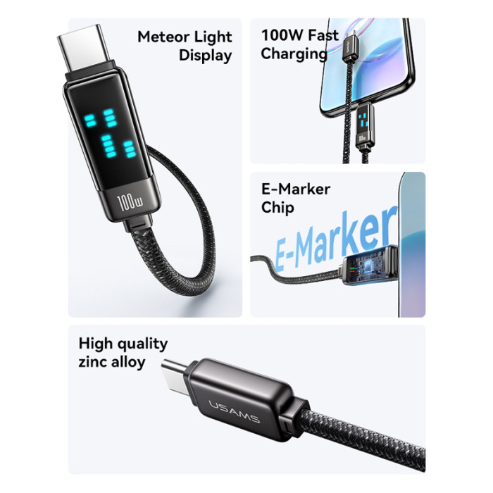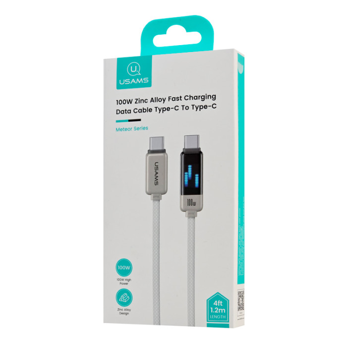Καλώδιο φόρτισης και μεταφοράς δεδομένων USB-C σε USB-C της Usams. Υποστηρίζει φόρτιση με απόδοση έως 100W και μεταφορά δεδομένων με ταχύτητα έως 480Mbps.