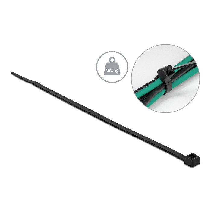 Δεματικά καλωδίων της Delock με αυτόματο μηχανισμό κλεισίματος, ιδιαίτερα υψηλής αντοχής με αντοχή σε εφελκυσμό έως 34 kg.